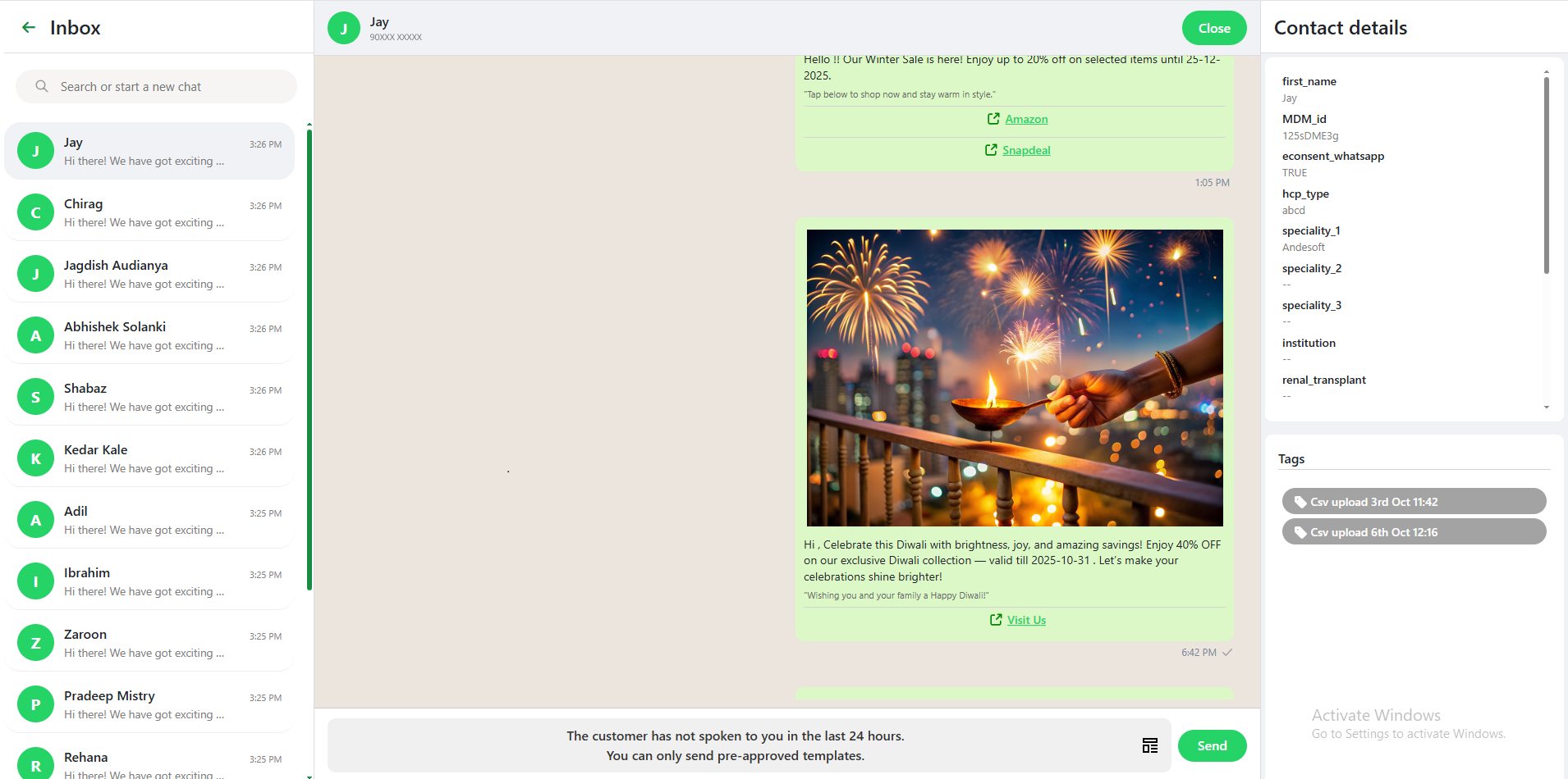 - Broadcast & Campaign Management — High-delivery messaging with segmentation and personalized templates.